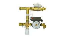 E2505型混水中心能夠將末端地暖高溫供水降低。當采暖末端散熱器與地暖同時存在,熱源供水溫度較高的系統中,將高溫供水與低溫回水混合,通過傳感器與溫控閥調節混合比例,達到降低供水水溫目的。