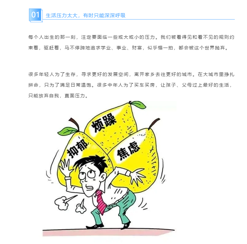 生活的壓力,需要一個宣泄口:或是深夜點上一支煙;或是球場揮汗如雨;或許關(guān)上門默默流淚……更多的時候,是低下頭,深呼吸,告訴自己你能行,請堅持。