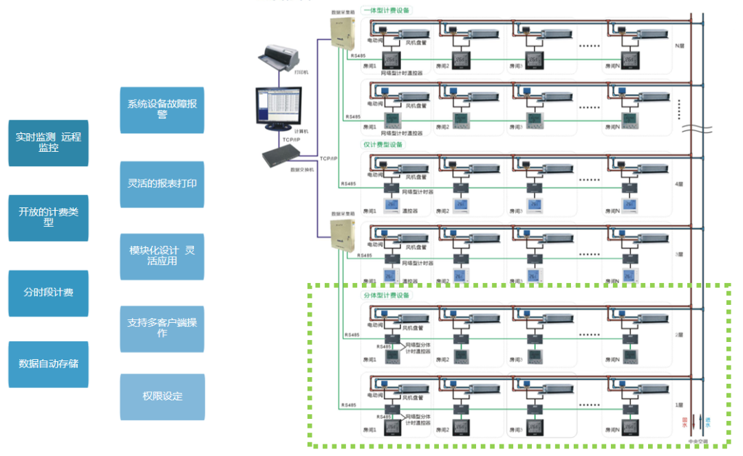 公攤監控計費單價=(用電費用+用水費用+管理費+設備折舊基金+設備維修基金+附加費)/(全部風盤末端用量累計和)核定單價:我們將協助管理員根據現場設備、環境以及用戶使用情況,通過與用戶協商并實地核定。