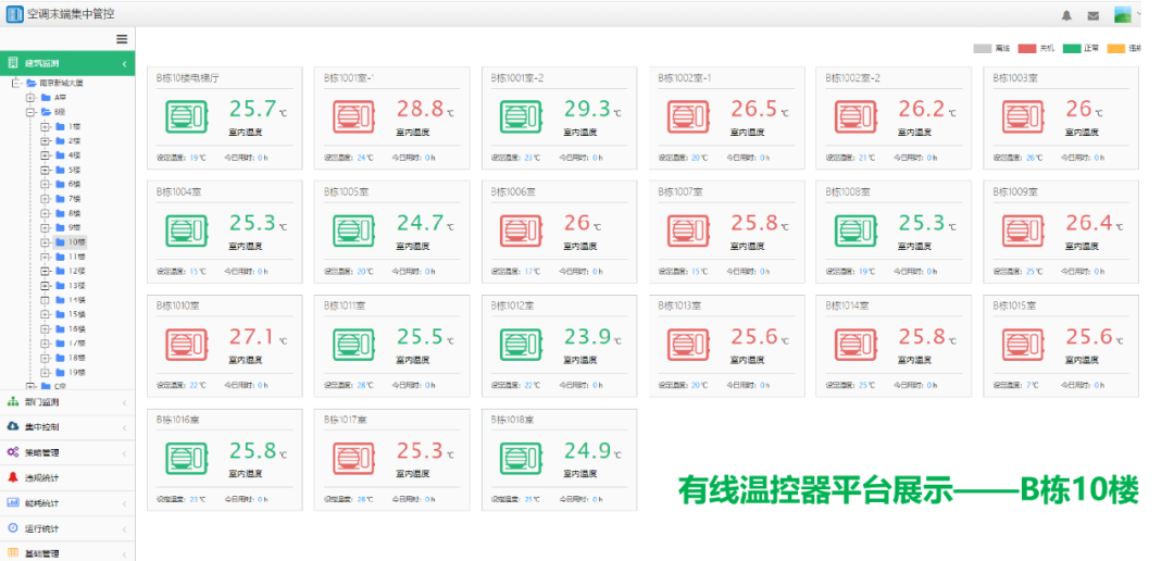 2、更換樓內(nèi)2100個房間的中央空調(diào)智能溫控面板,并對ABCD座末端溫控器及配套設(shè)備進(jìn)行安裝調(diào)試,并集成至綜合能源管理平臺中