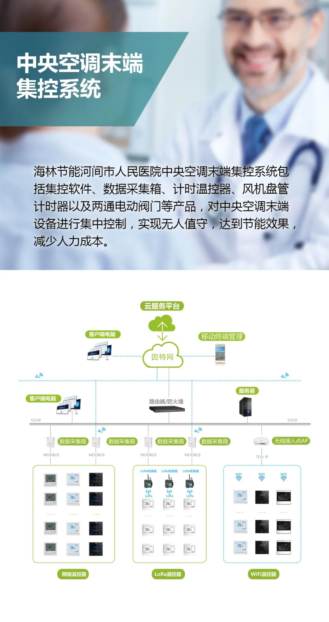 海林節能河北總代理河北海歌節能科技有限公司實施部署了方案系統及產品,助力河間市人民醫院建筑環境自動調節、集中控制,降低運營成本。項目負責人員以專業的技術和優質的服務獲得客戶高度認可和好評!