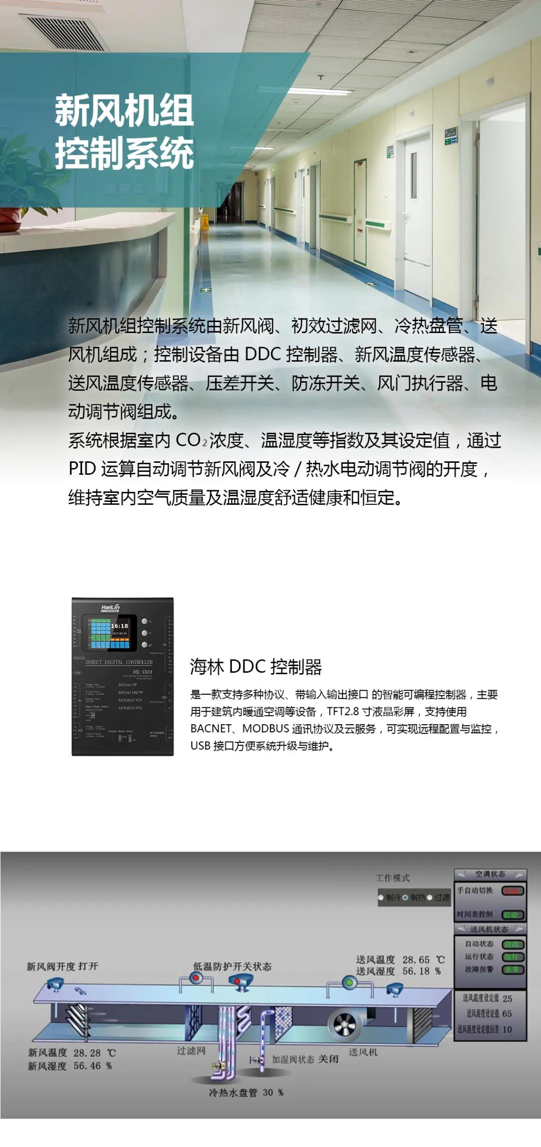 海林節能作為暖通自控設備供應商,為河間市人民醫院提供了中央空調末端集控系統、水力平衡系統、新風控制系統等技術和設備,為醫院營造舒適健康和節能的高品質環境。