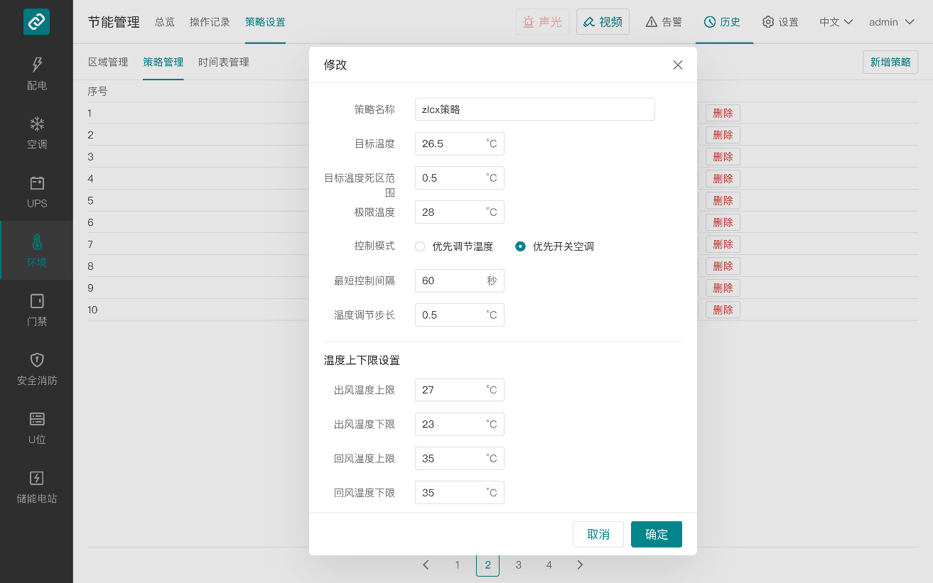 (1)空調用電的優化,在滿足機房熱負荷需求、環境溫度要求的前提下,通過自動調節空調出回風溫度設定、運行數量來實現空調用電的最優化。