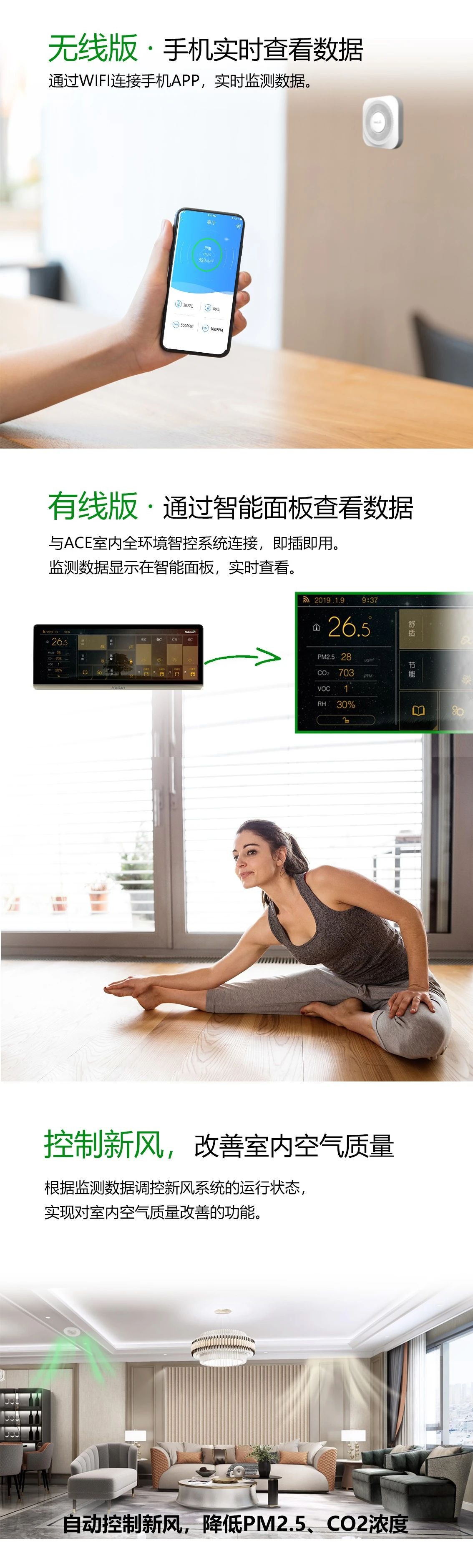 集 PM2.5、TVOC、CO? 、溫度、濕度的監(jiān)測(cè)功能于一體,實(shí)時(shí)精準(zhǔn)監(jiān)測(cè),數(shù)據(jù)一目了然