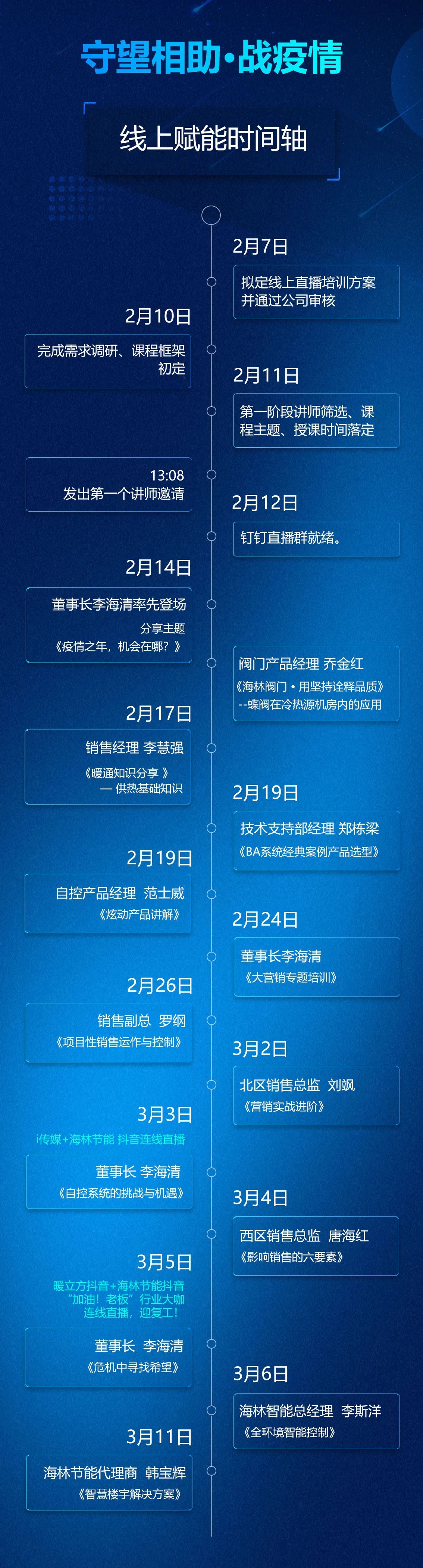 2020年開年新冠肺炎突然來襲,打亂了社會經濟的發展節奏和企業的經營步伐。如何在危難時刻凝聚力量,成功應對挑戰,如何轉危為機,實現絕境逢生?成為眾多企業面臨的問題。 海林節能迅速反應,積極把握特殊時期“宅經濟”的機遇,將營銷戰場由線下“搬到”了線上,開展了一系列直播培訓、線上交流活動。