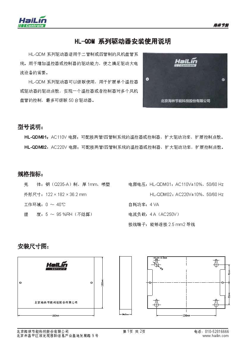 HL-QDM系列驅(qū)動器適用于二管制或四管制的風(fēng)機(jī)盤管系統(tǒng)。用于增加溫控器或控制器的驅(qū)動能力,使用之滿足驅(qū)動大電流設(shè)備的需要。