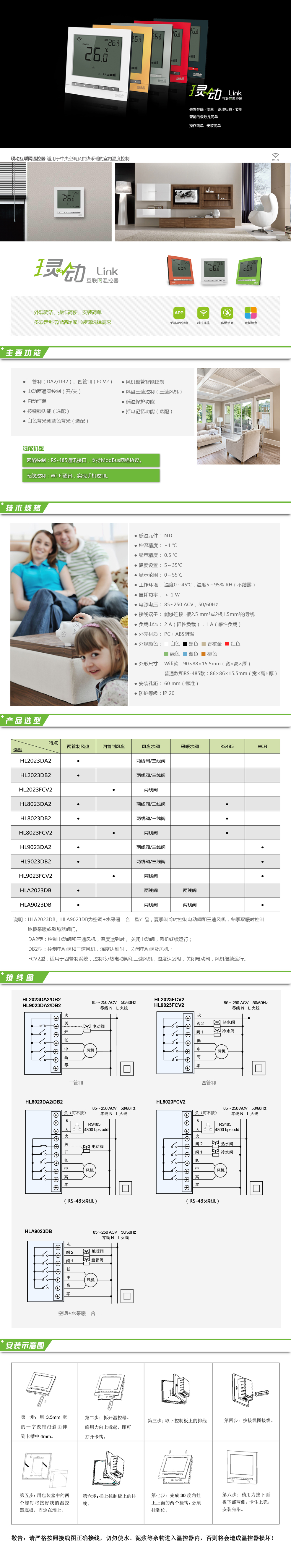 ?動空調溫控器包括“本地控制、有線控制、無線控制”三種類型,適用于控制中央空調風機盤管系統或風管道系統,自動調節室內溫度。一體化弧形表面設計簡潔流暢,多彩定制搭配滿足家居裝飾選擇需求,進口材質安全耐候性強,網絡連接安裝簡單操作便捷,感知靈敏控制精準。