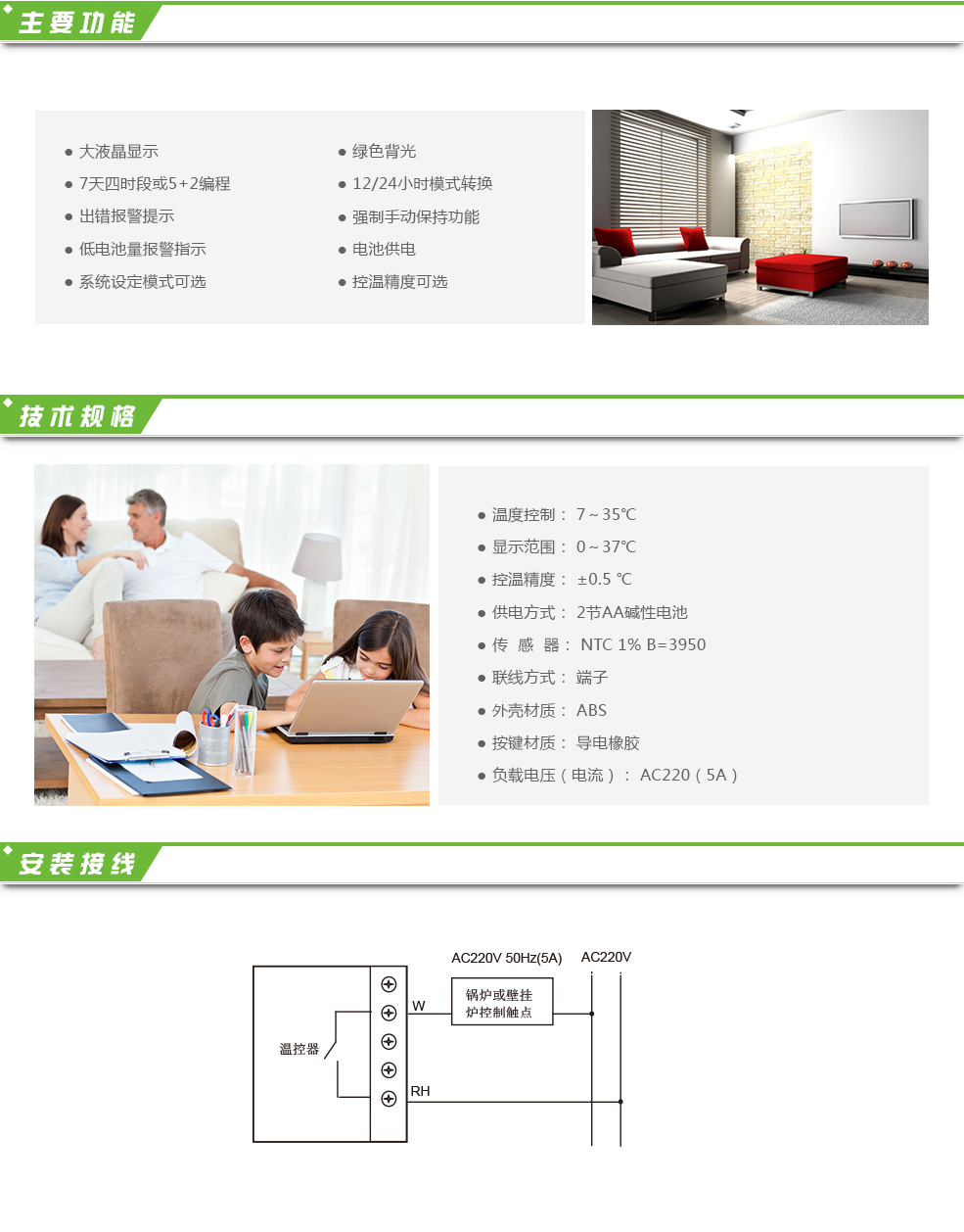 鍋爐溫控器A3253使用電池供電,用于控制燃氣壁掛爐、燃油及電子鍋爐等制熱設(shè)備,適用于家庭、辦公樓、寫字樓、學校等場所的采暖溫度控制。