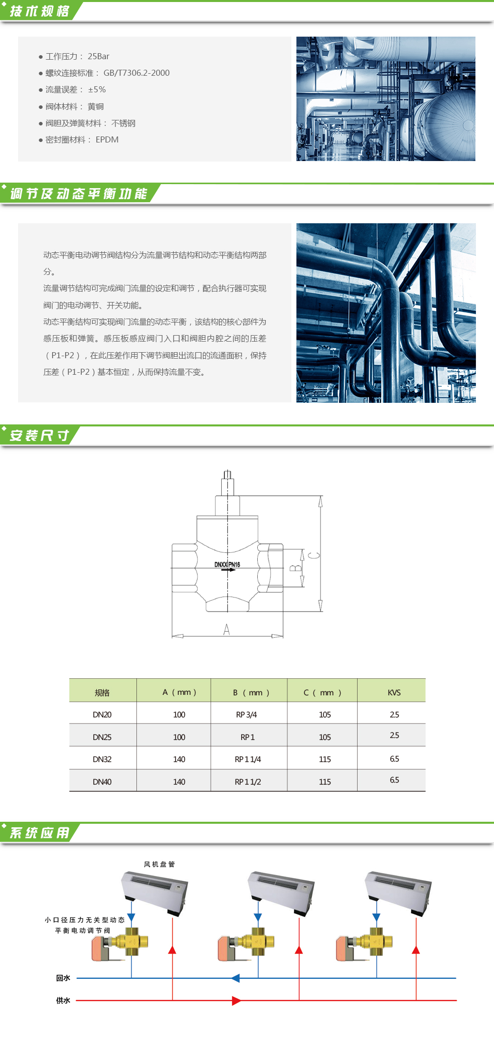 本系列產品集動態平衡與調節功能于一體,根據流量需求調整好閥門開度,無論系統壓差如何波動,只要在閥門的工作范圍內,閥芯即可自動調整可變流道開度,保持流量恒定不變。該閥門采用新穎獨特的剛性結構,徹底克服老舊膜片式閥門的壽命短、調節范圍小等缺點。精確校準的閥芯可確保恒定在±5%的偏差范圍內。通過動態平衡功能動態平衡系統的阻力,保證設備輸送介質流量在一定壓差 ...