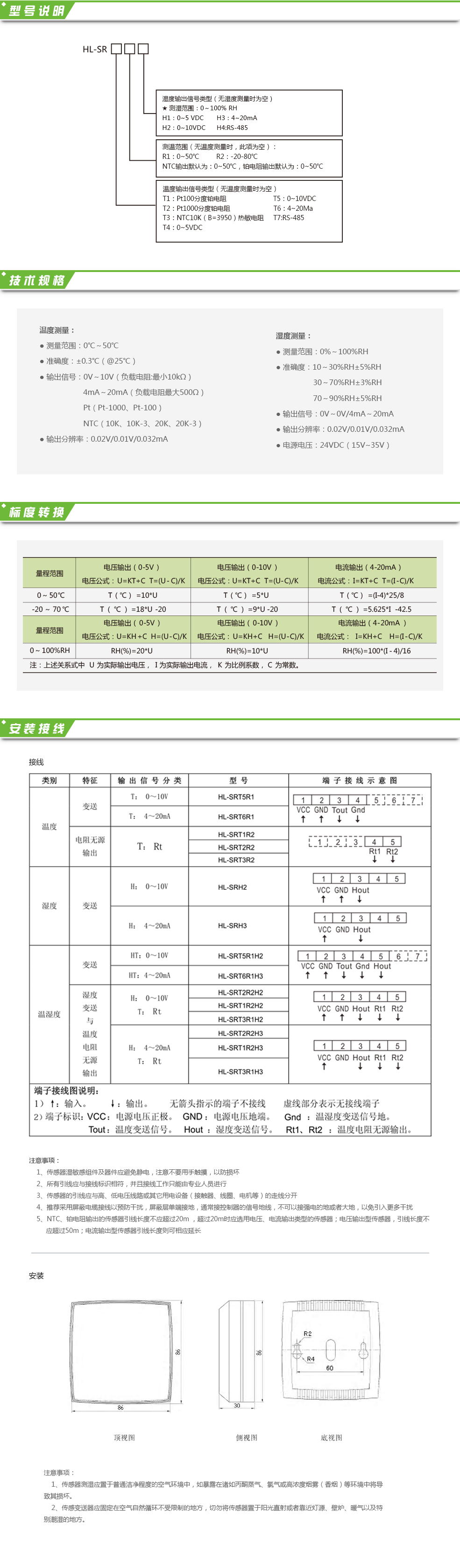 室內溫濕度傳感器HL-SR