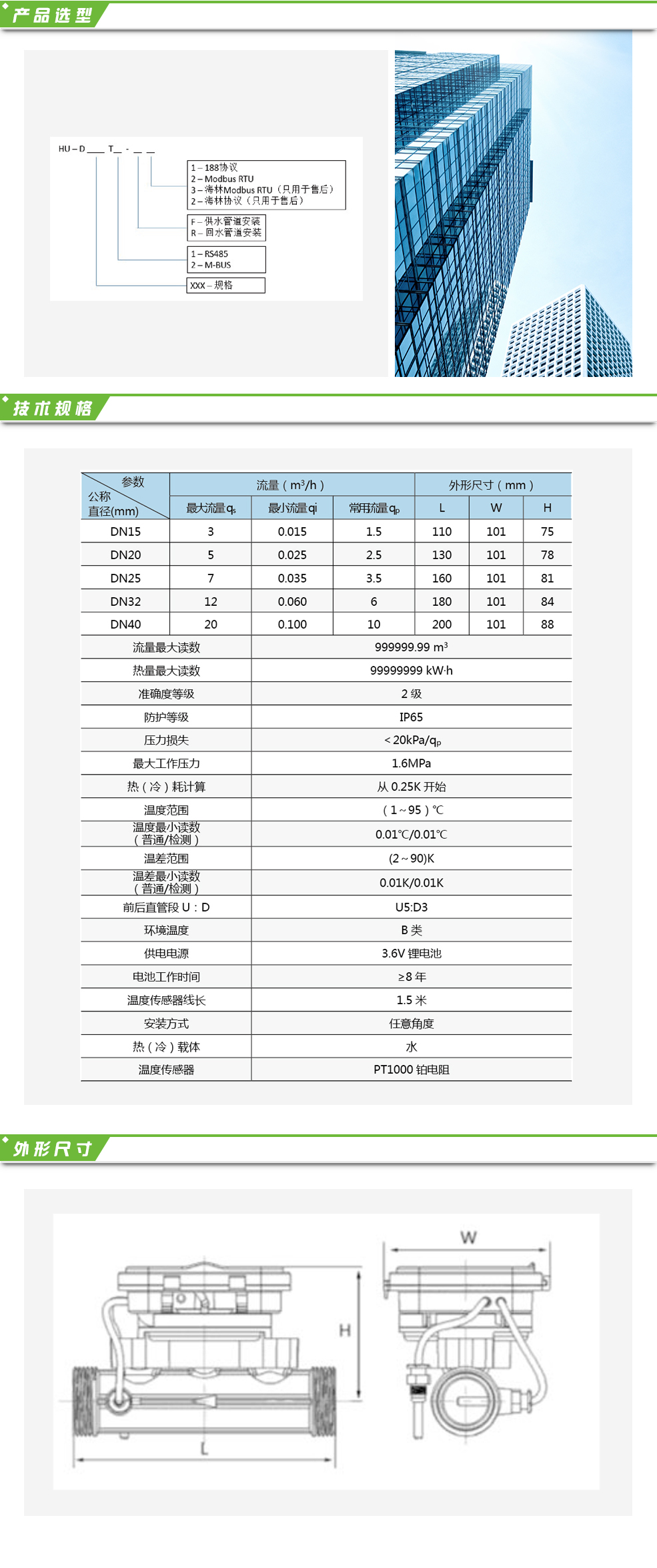 超聲波熱能表通過超聲波的方式測量流量及流經熱交換系統所釋放或吸收能量的儀表。它通過兩種傳感器測得的物理量——熱載體的流量和進出口的溫度,經過密度和熱焓值的補償積分計算,得到熱量值。它是一種以微處理器和高精度傳感器為基礎的機電一體化產品。廣泛應用于暖通監測與計量領域。